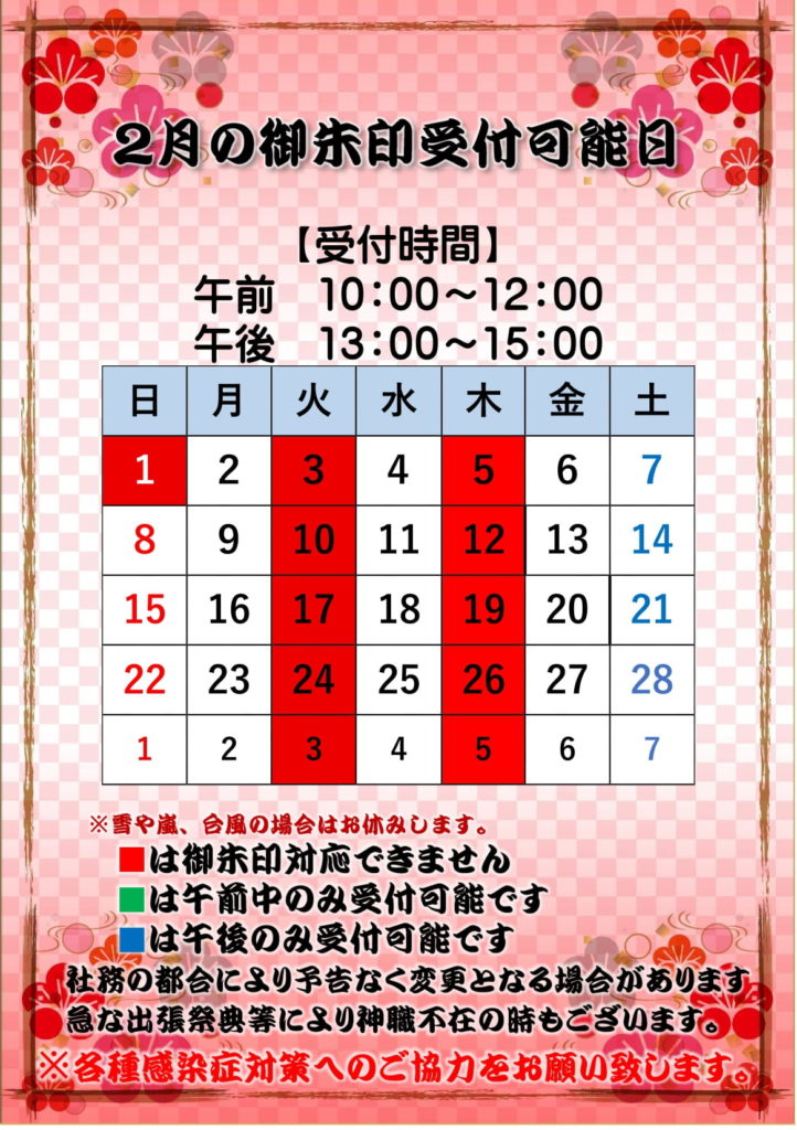◇2月の御朱印情報◇