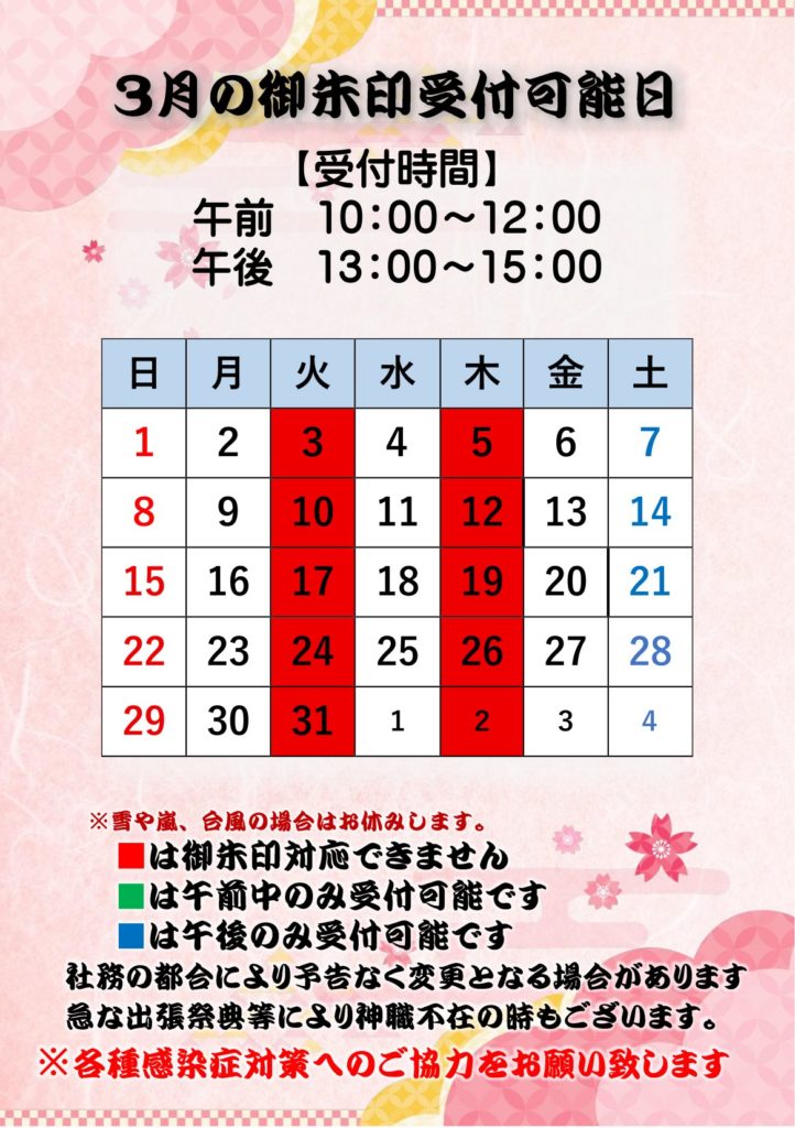 ※休みの日は授与できません。授与カレンダーをご確認ください。